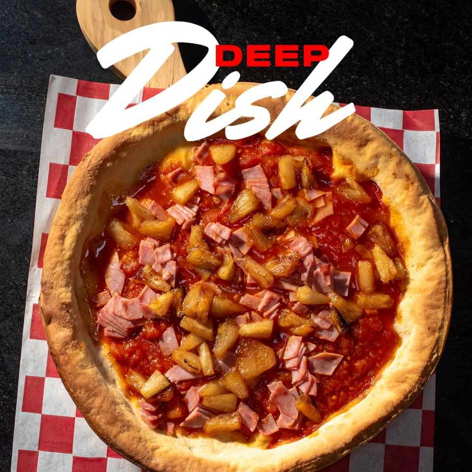 LA TRADICIONAL DE JAMON Y PIÑA, ACOMPAÑADA CON NUESTRA SALSA ESPECIAL HECHA EN CASA Y 500 GRS DE MIX DE QUESOS.