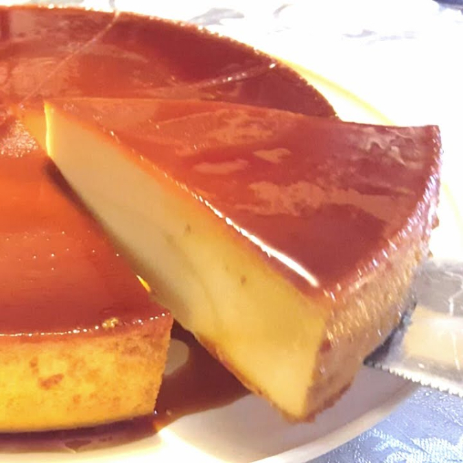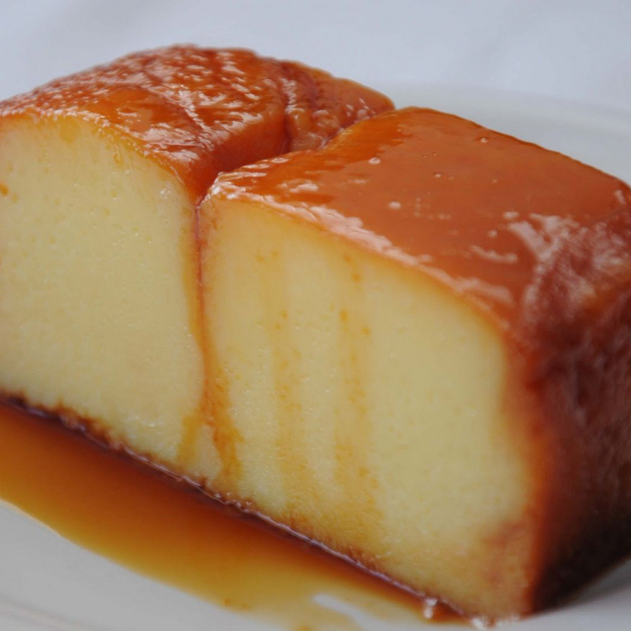 rebanada de flan napolitano hecho con leche des lactosa lechera y azúcar y huevo.