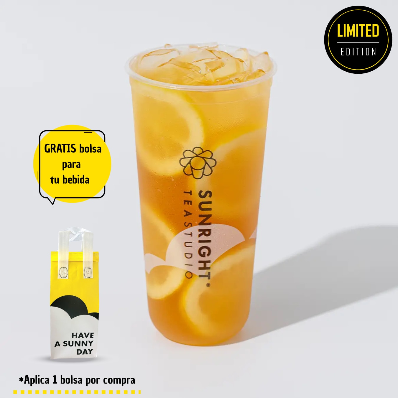 Té verde Jazmín combinado con jugo de limón servido con rebanadas de Limón.