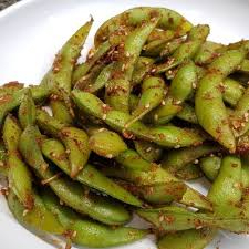 FRIJOL DE SOYA TIERNOS SALTEADOS CON SHISHIMI Y UN TOQUE DE SAL DE MAR