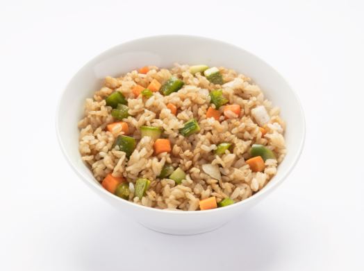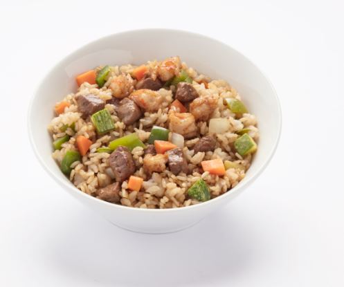 190 gramos. Arroz frito con verduras, carne, huevo y camarón (50g).