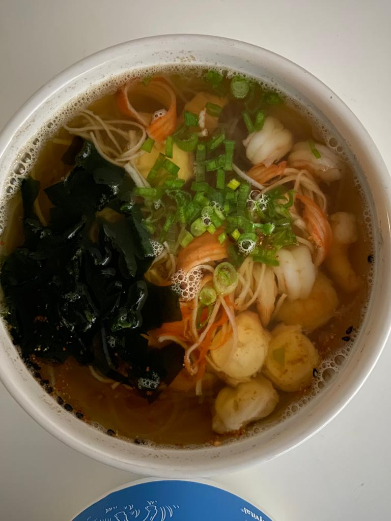 Consomé con verduras, pollo y arroz con sishimi (picante.