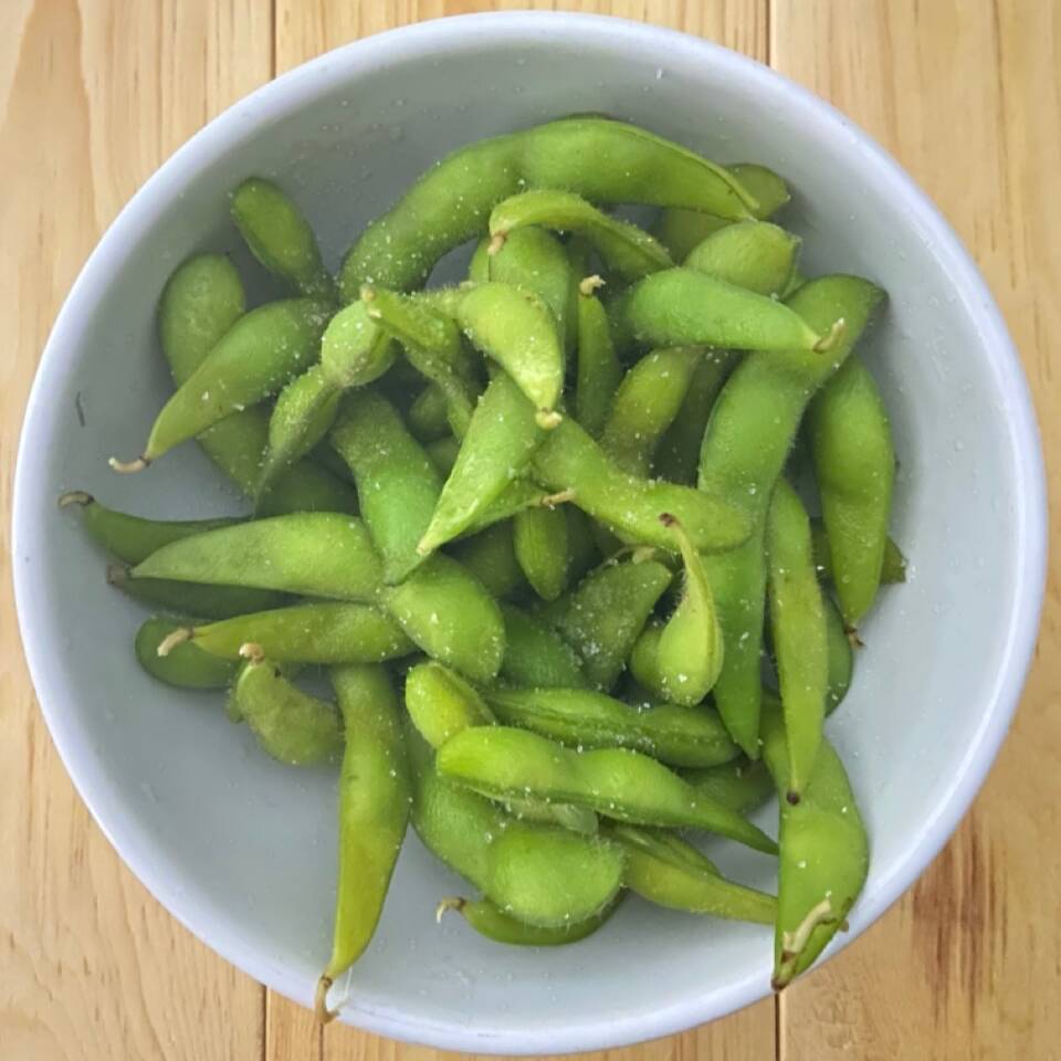 Rico frijol de soya tierno hervido con un toque de sal y asado con un toque de soya y spicy.