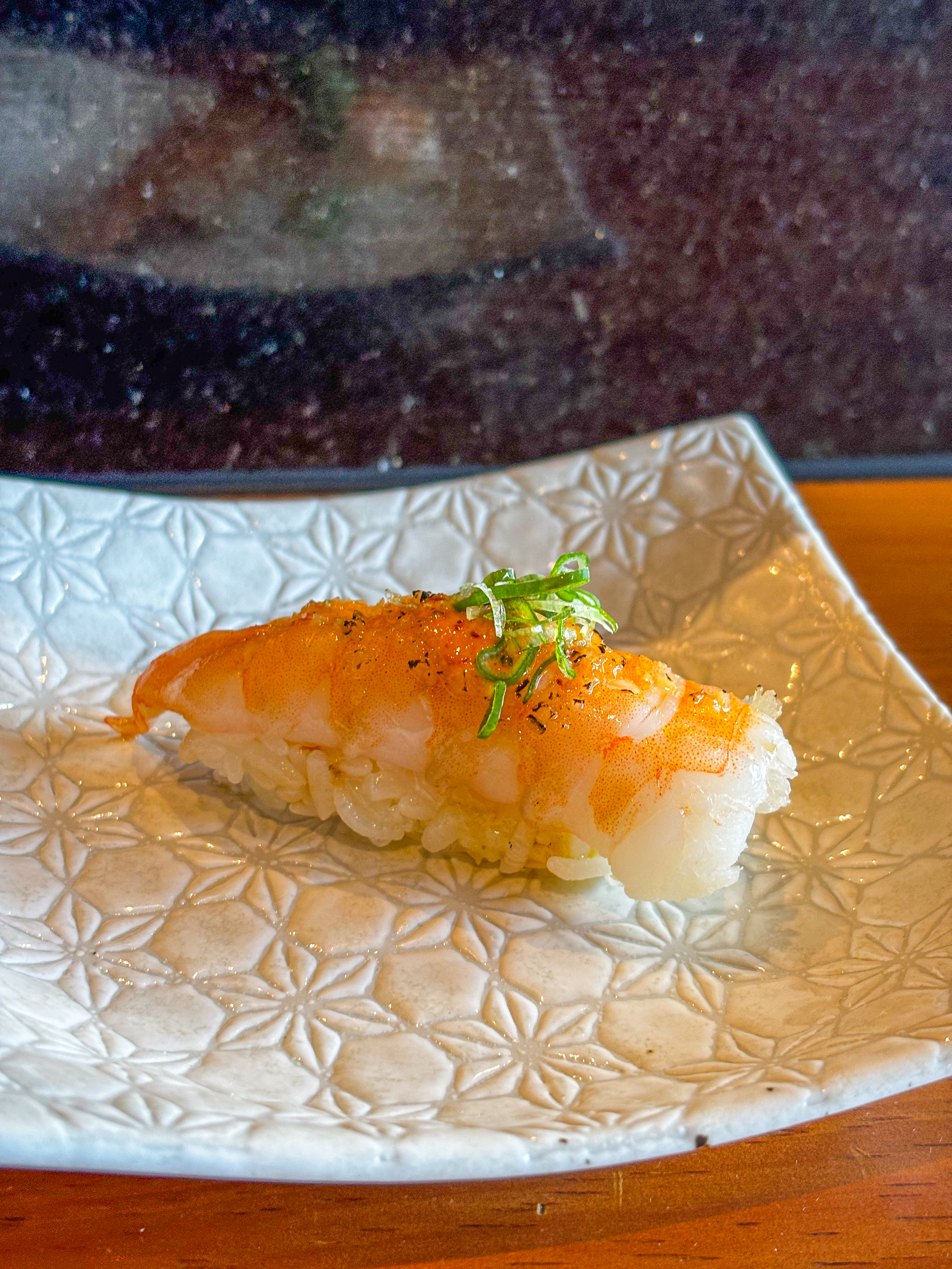 Base de arroz con camarón, ajonjolí, aguacate, pepino, salsa de anguila, aderezo spicy y kizami nori.
