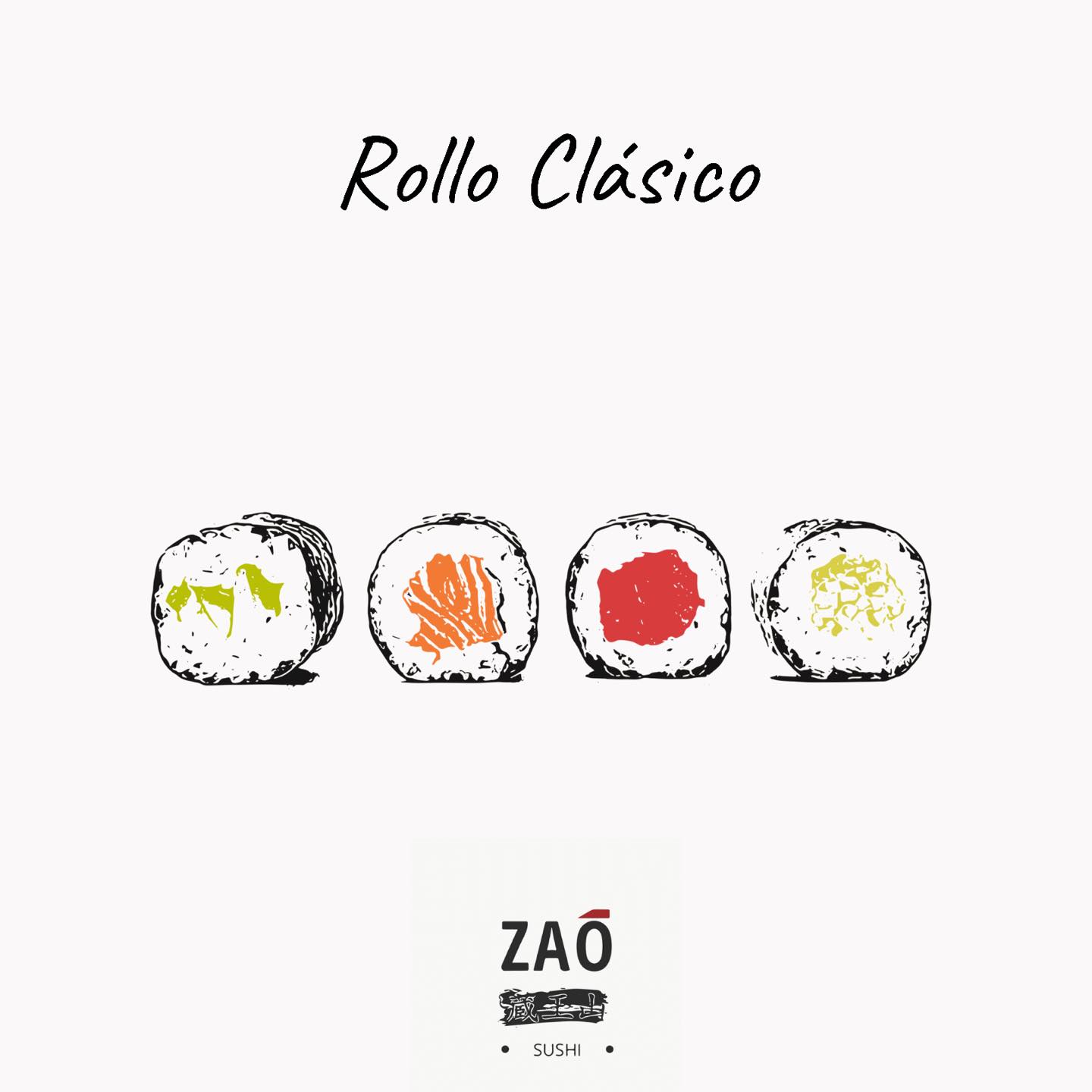 Relleno de salmón, atún o camarón, alga nori por fuera.