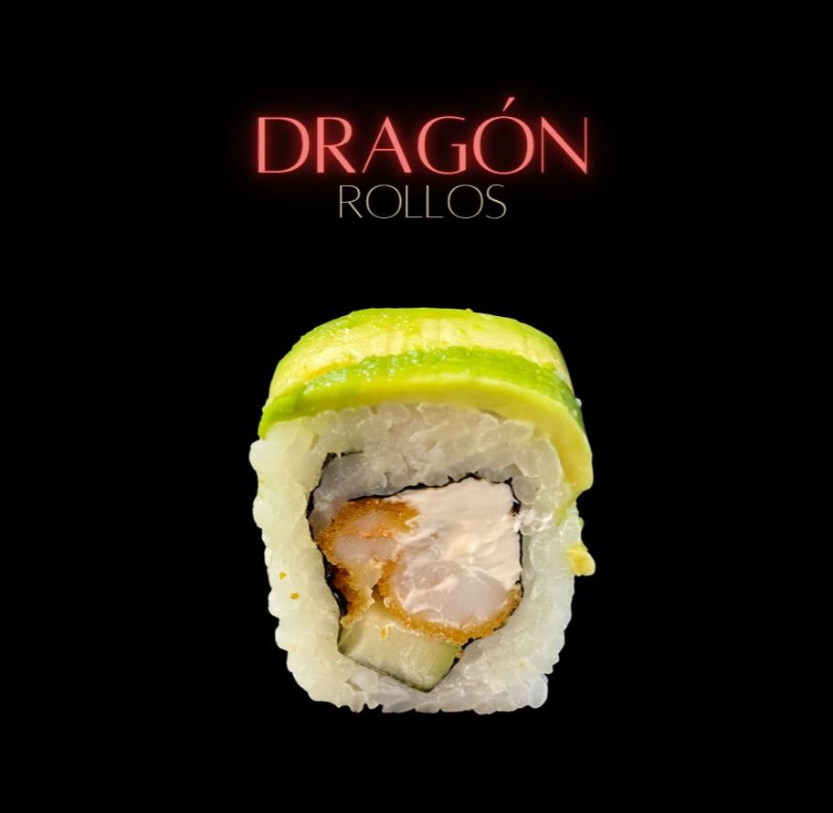 Relleno de camarón empanizado, pepino, queso crema, cubierto de aguacate y salsa de anguila.
