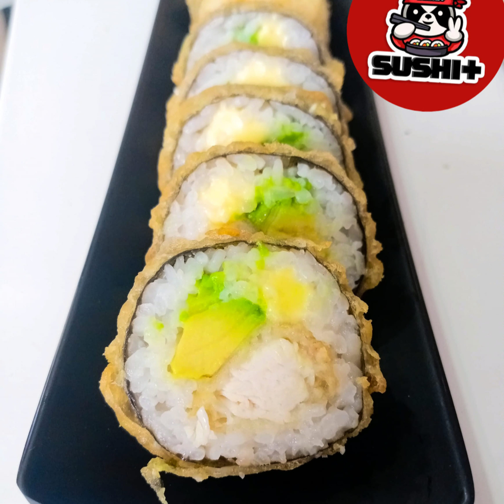 POR FUERA ROLLO EMPANIZADO Y POR DENTRO TIENE CAMARON, PEPINO Y QUESO MACHEGO.