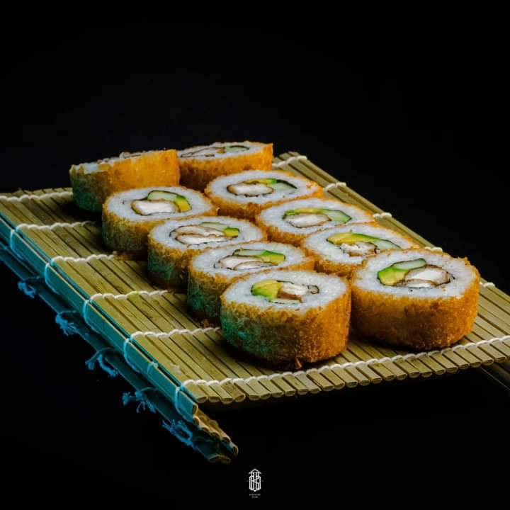 SUSHI ALGA POR FUERA FRITO EN TEMPURA, ADENTRO CAMARON Y QUESO CREMA.