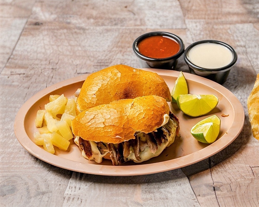 10 Panes pita, 10 tortilla maíz, salsa chipotle, crema de ajo y limones.