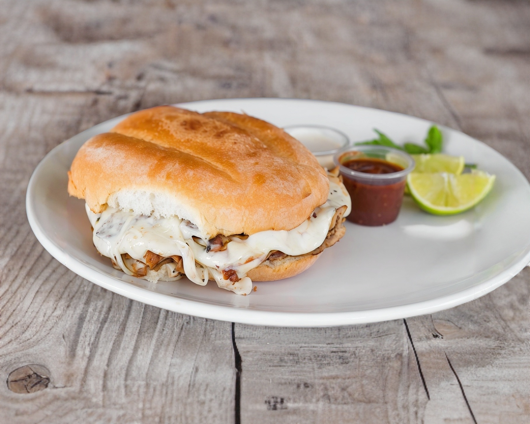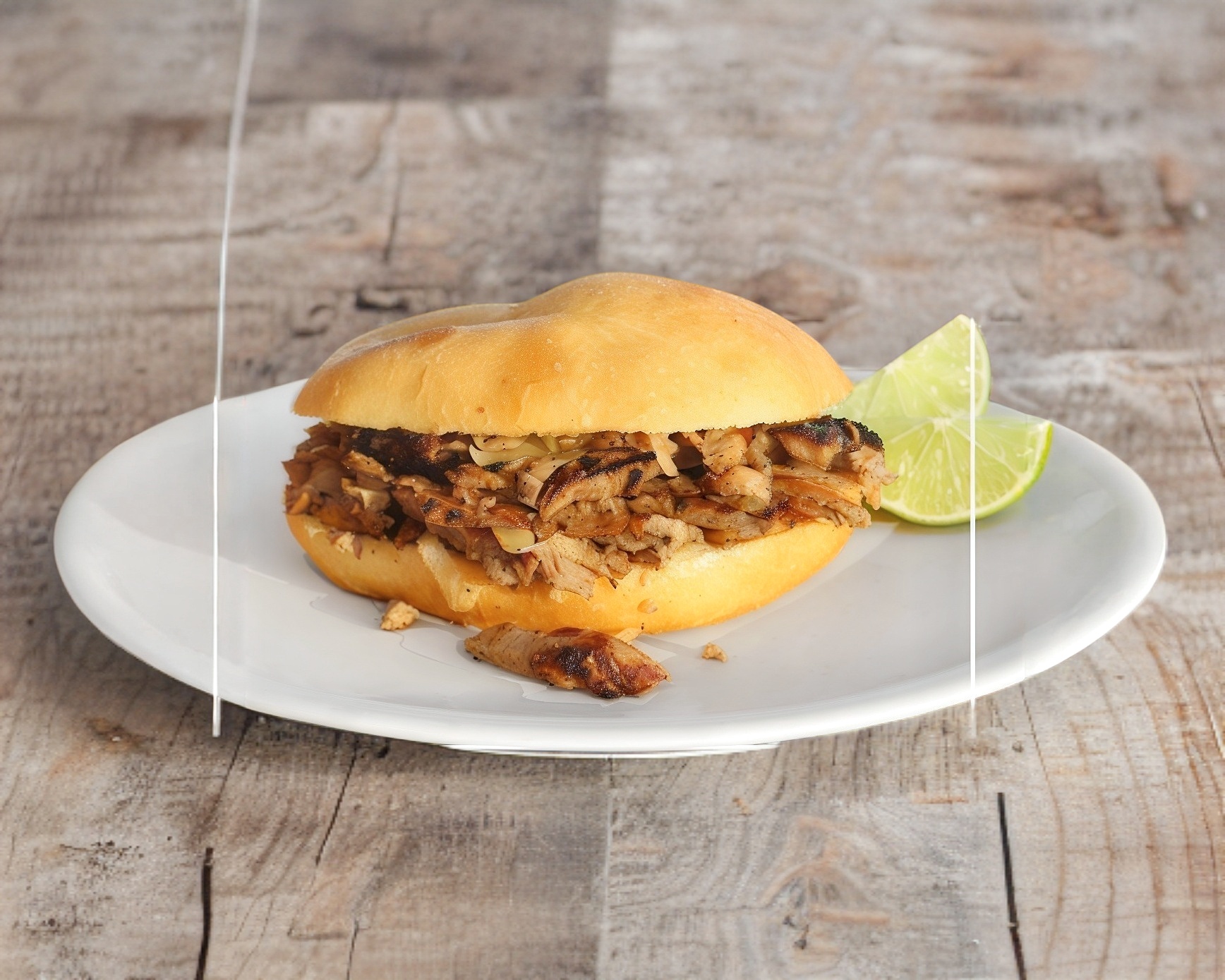 300 gr. de carne tradicional, 3 panes pita, 3 tortilla maíz, salsa chipotle, crema de ajo y limones.