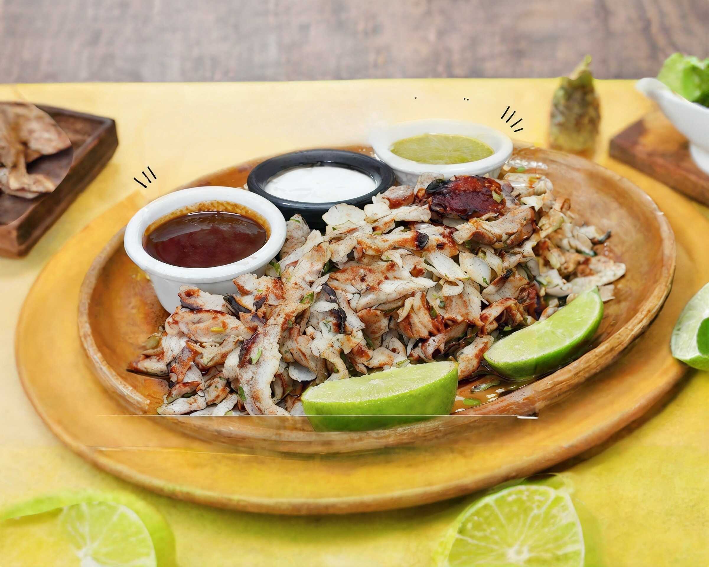 500 g De carne, 5 panes pita, 5 tortilla maíz, salsa chipotle, crema de ajo y limones.