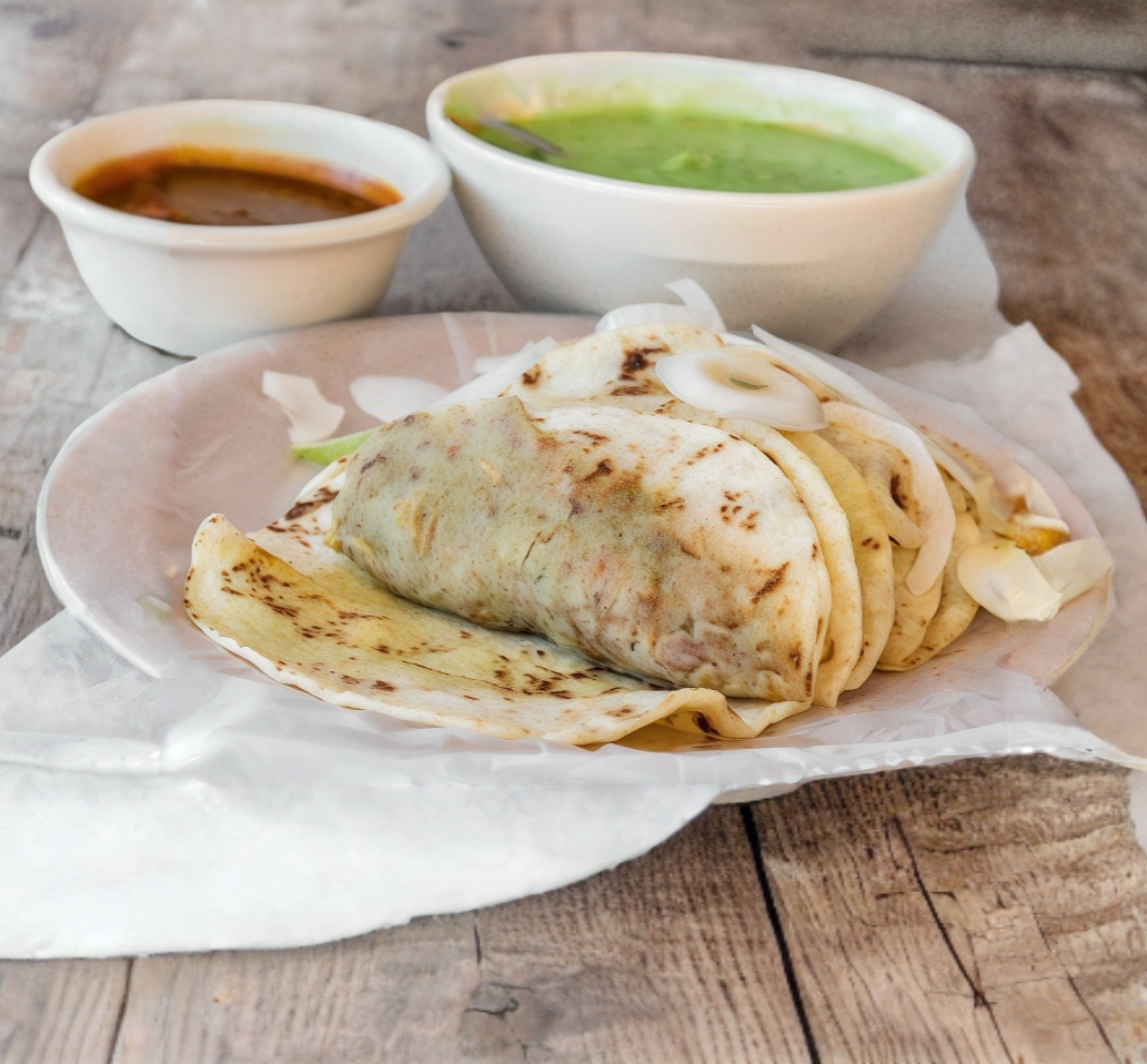 1 pzs-Carne Deshebrada (Guacamole, cebollitas, y salsa de habanero por aparte)