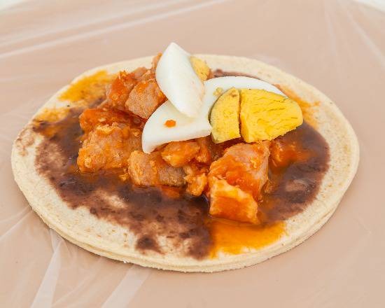 Taco de Chicharron en Salsa Roja