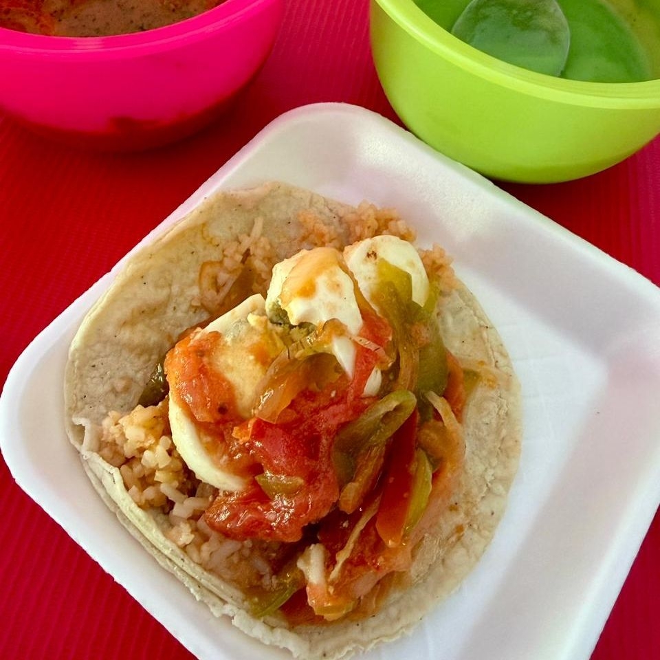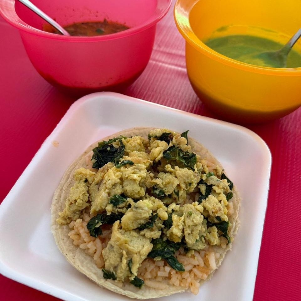 Taco base de arroz con chaya con huevo.