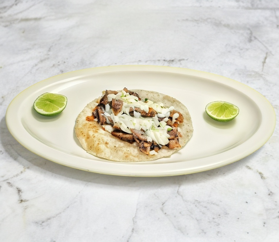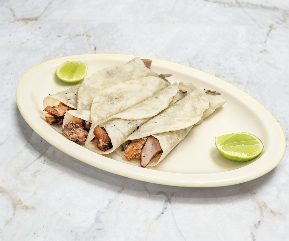 Taco Pan Árabe contiene, carne de cerdo, salsas y limon