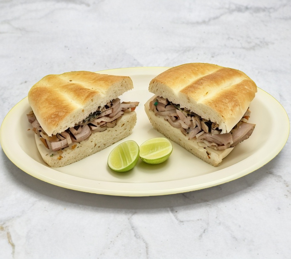Bolillo, carne árabe, salsas y limones