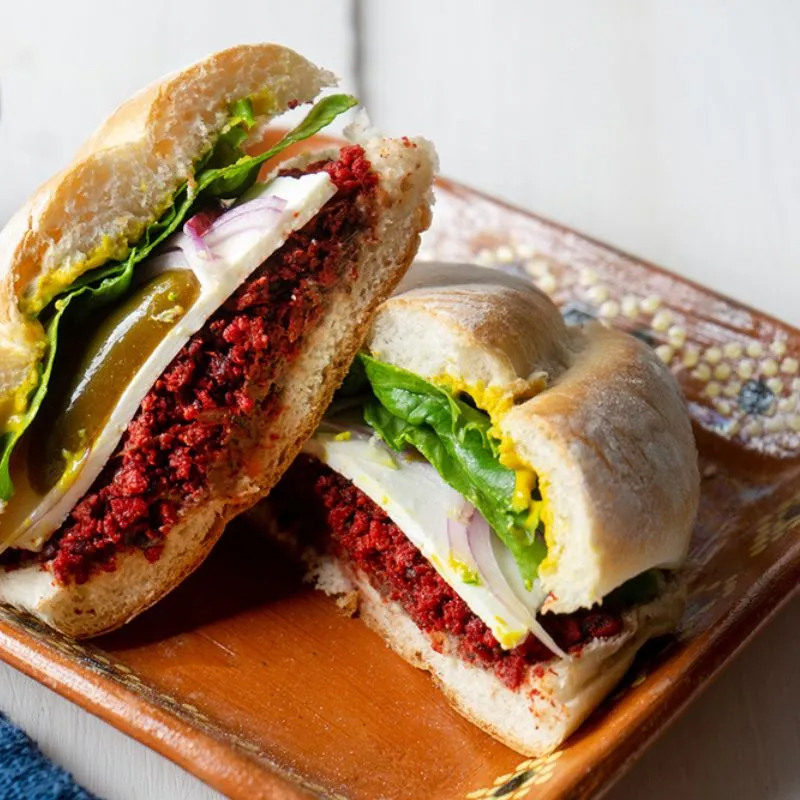 TORTA DE CECINA NATURAL, ECHAS CON BOLILLO SUAVE, ACOMPANADAS DE SU JITOMATE, CEBOLLA, AGUACATE Y QUESO OAXACA (UNA EXPLOSIÓN DE SABORES DIRECTAMENTE EN TU PALADAR)