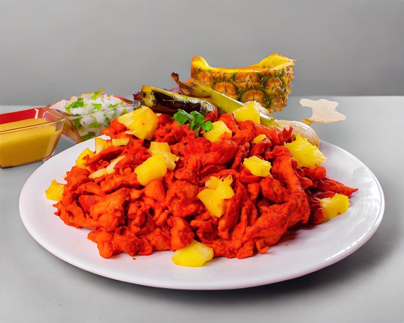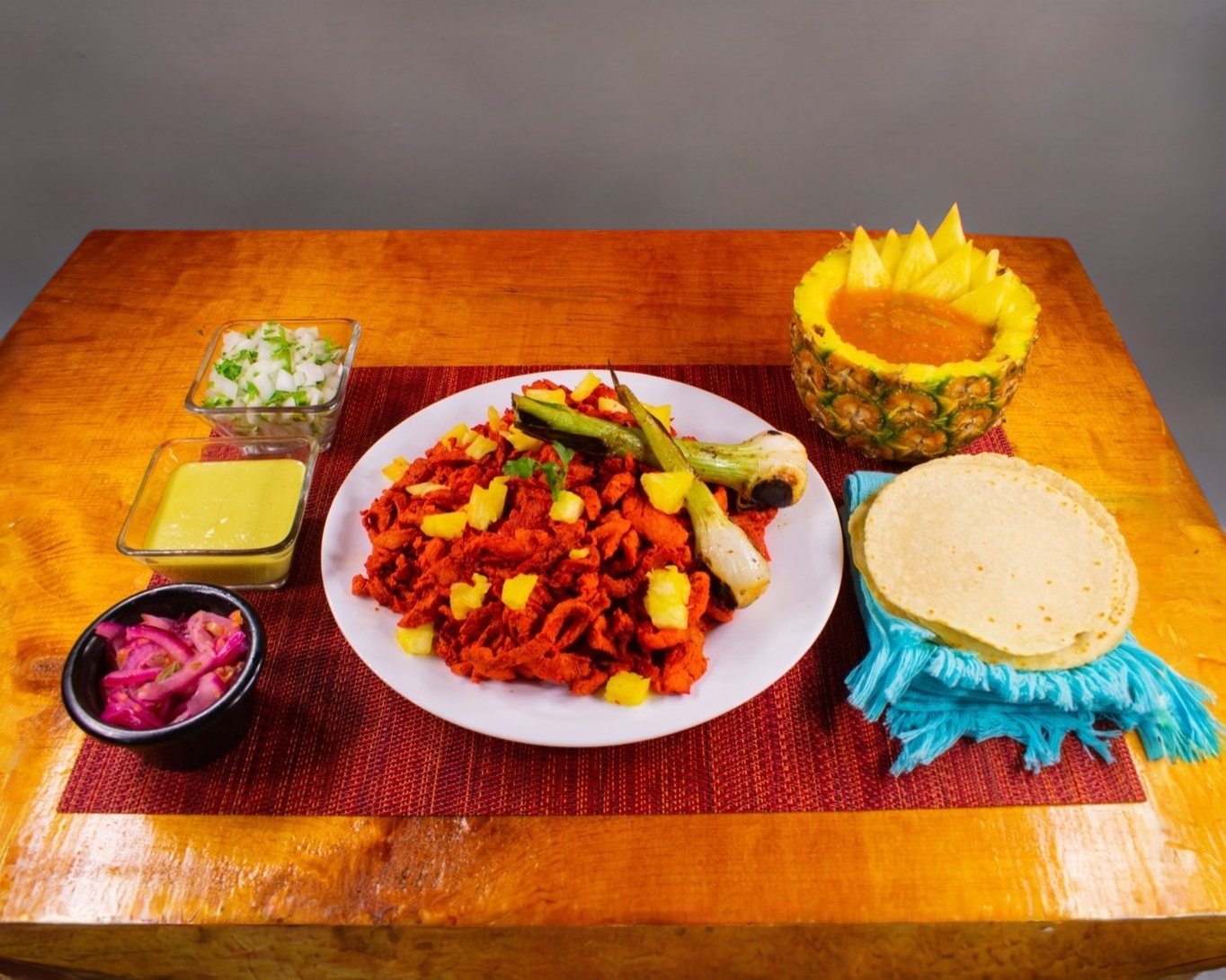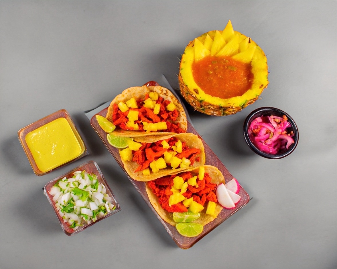 Incluye piña, tortillas, cebolla cambray, cilantro y salsa.