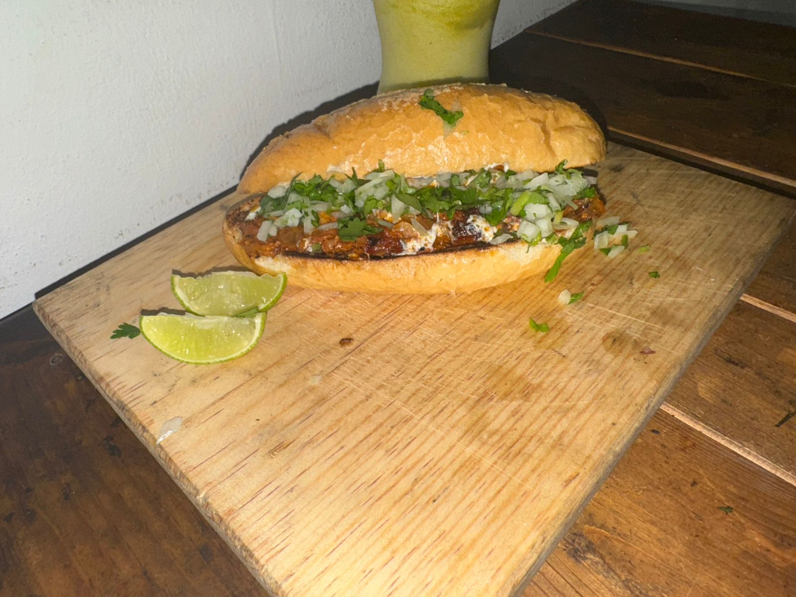 Jugosa carne de cerdo, servida en un bolillo, acompañada de cilantro, cebollita y mayonesa. ¡Un clásico que te encantará!.