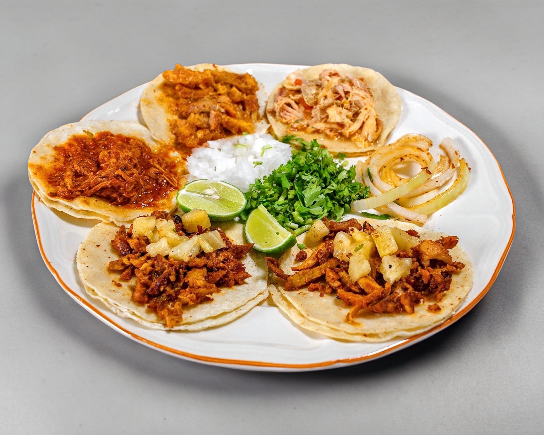 Carne de res y cerdo, bien sazonada, servida en tortilla de maíz caliente con un toque de cilantro y cebolla, ¡un clásico irresistible!
