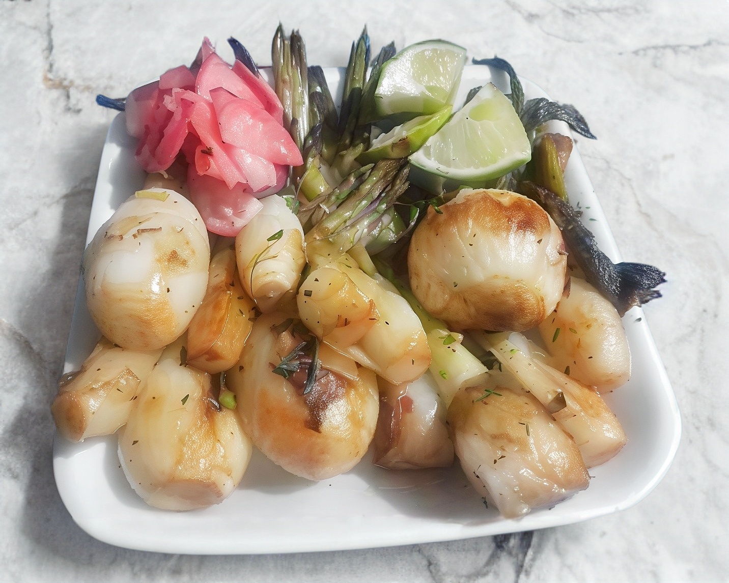 Acompañado de tortillas de maíz, piña, cebolla, cilantro, cebollas cambray, salsas, limones y rábanos.