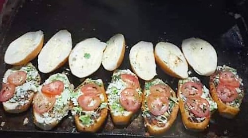 Chile morrón, cebolla, chorizo y queso.