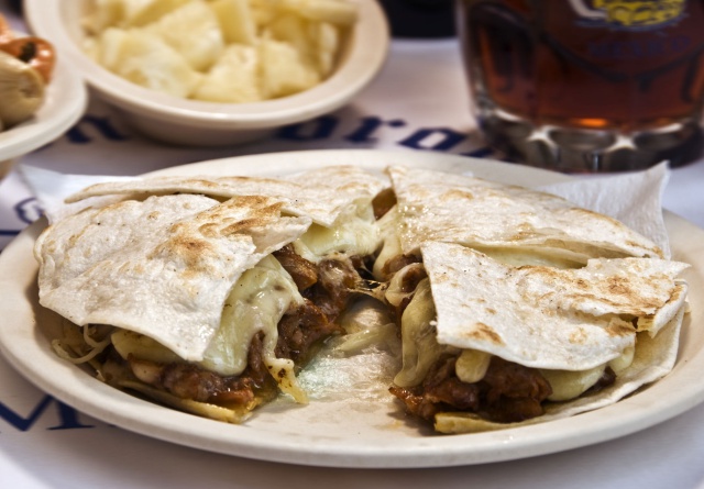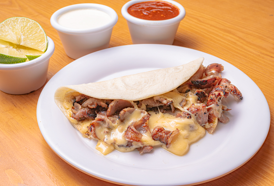 Tortilla de harina, queso derretido, cillantro y cebollita