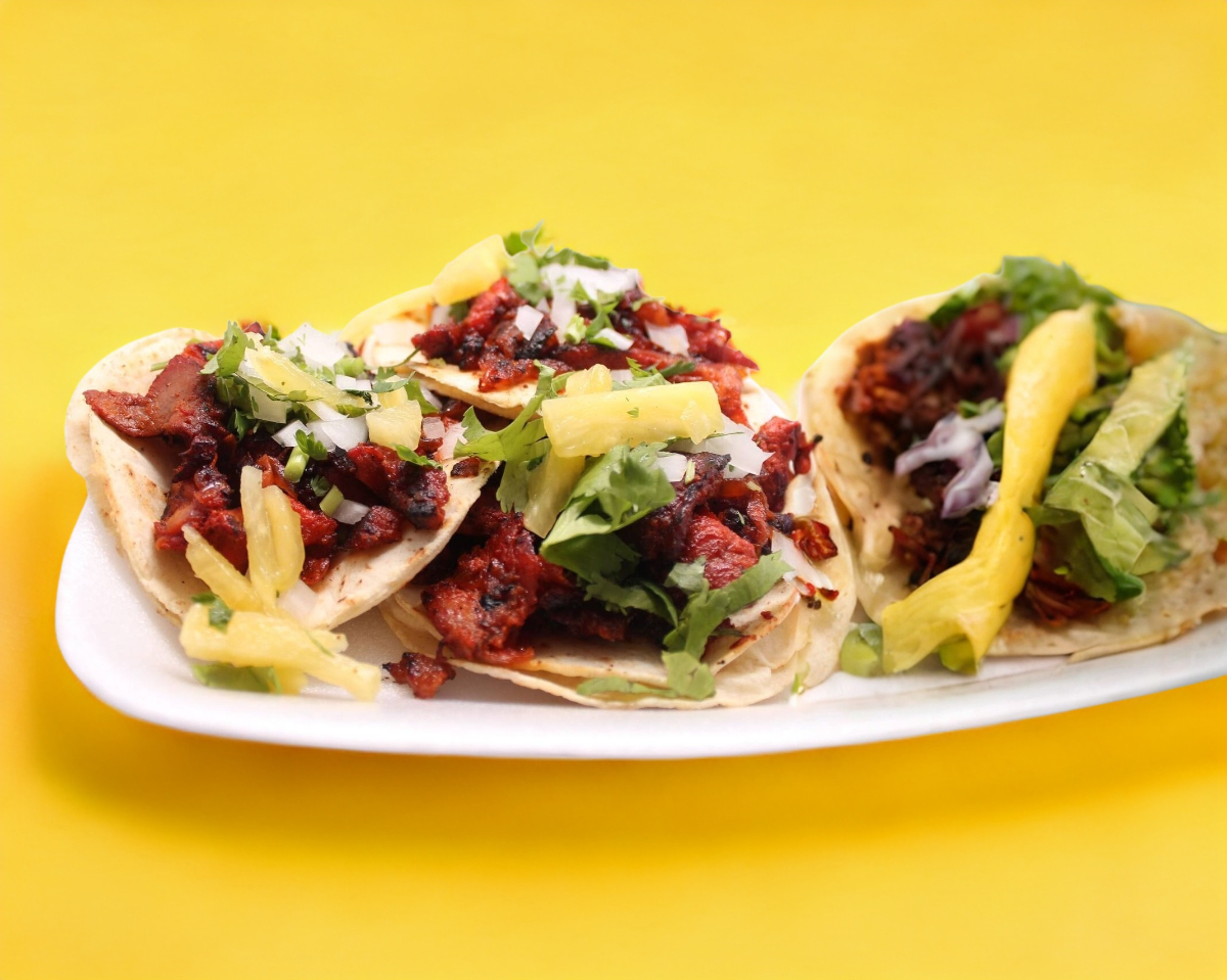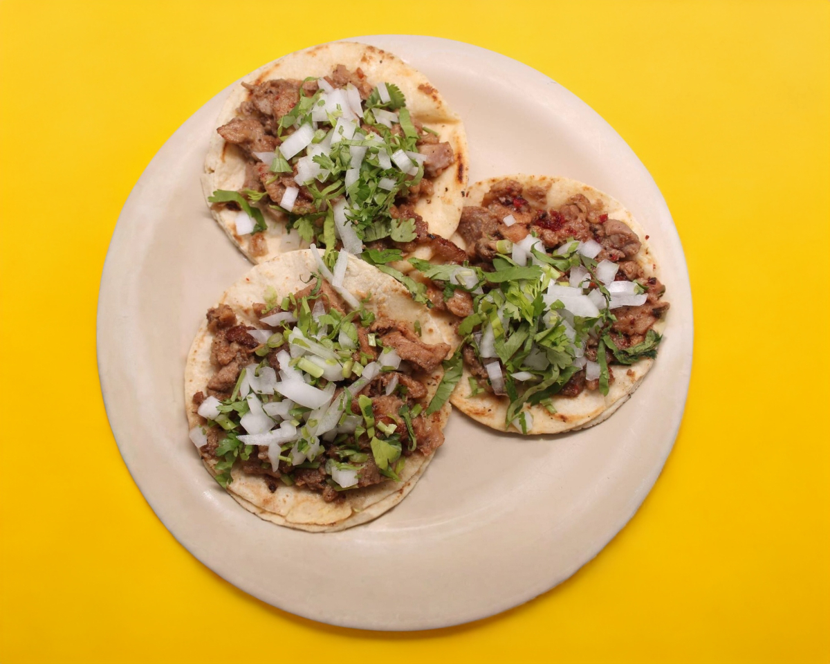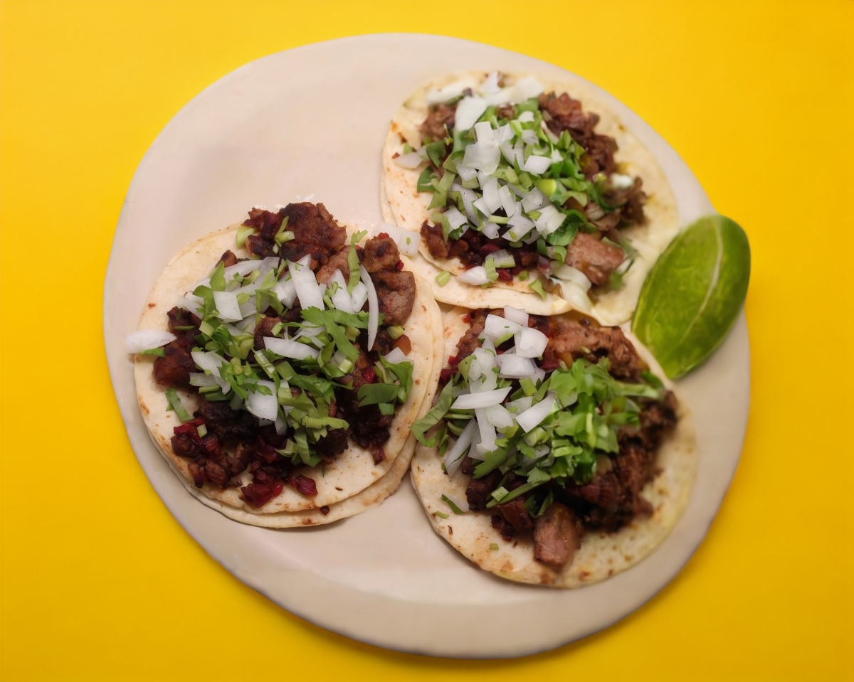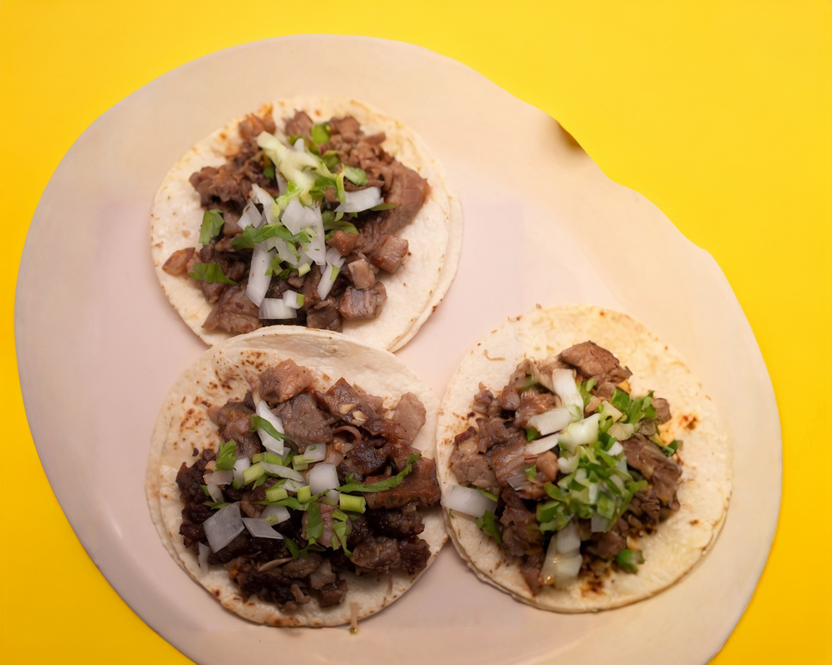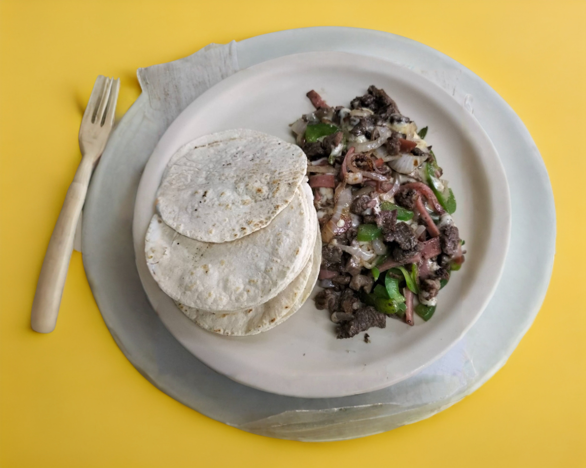 Chile morron, tocino, cebolla, carne a elegir y tortillas.(150g)