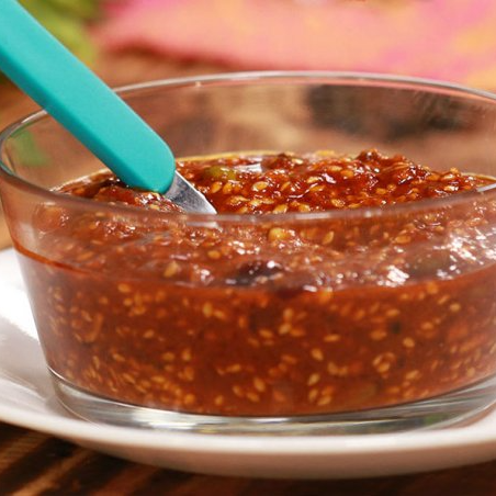 Salsa de tomate verde, con chile, cebolla y cilantro