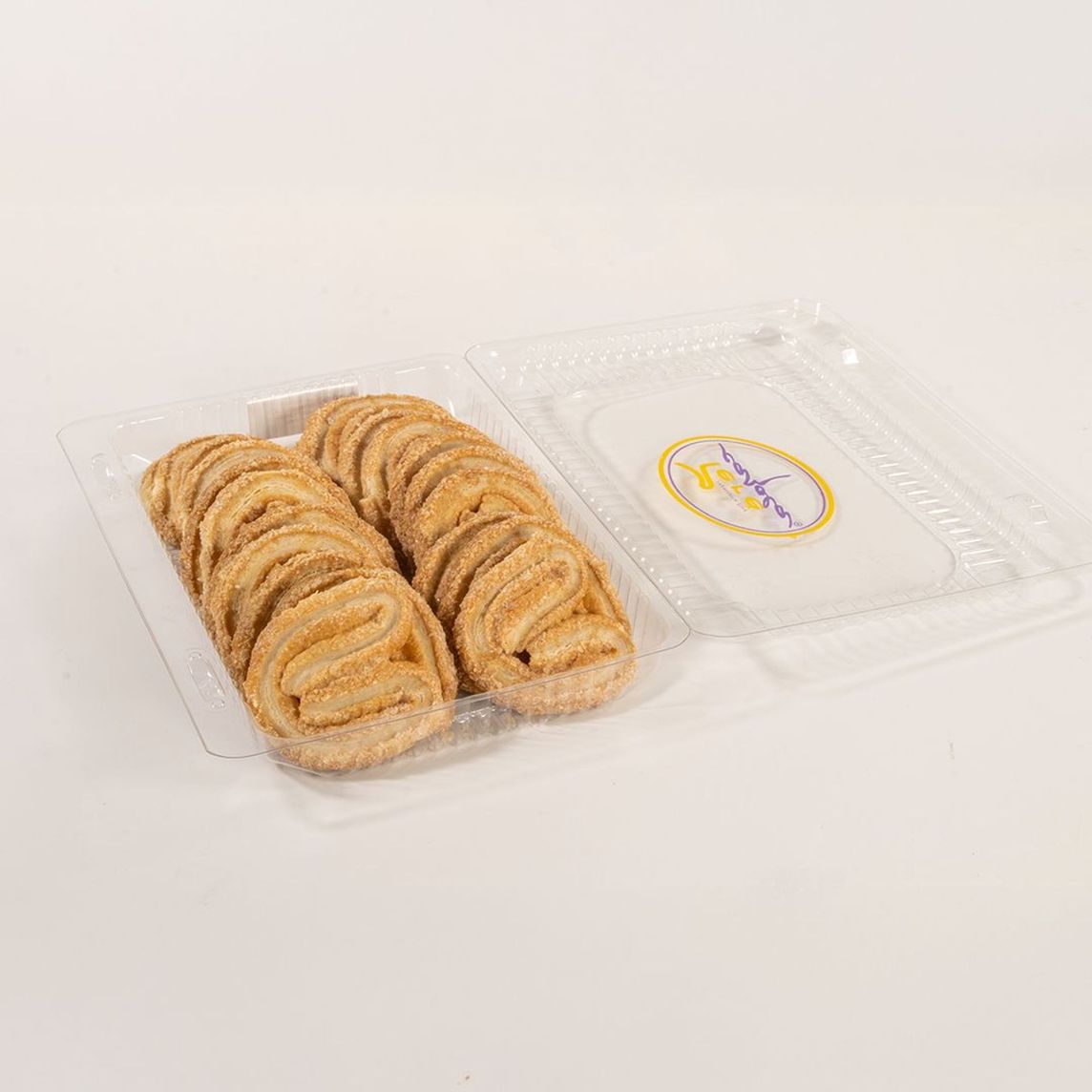 Láminas de crujiente hojaldre rellenas de jamón y queso, escarchadas con azúcar ligeramente caramelizada. Especialidad de la casa