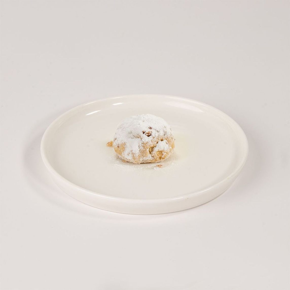 Galletas tipo polvorón argentino rellenas de cajeta, decoradas con nuez y espolvoreadas con azúcar glass.
