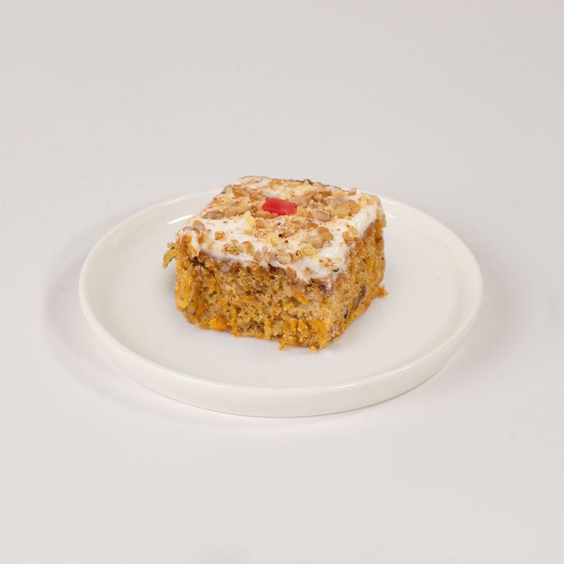Exquisito pan de zanahoria, con relleno y cobertura elaborado a base de queso crema, decorado con nuez y cereza. De 6 a 8 porciones.