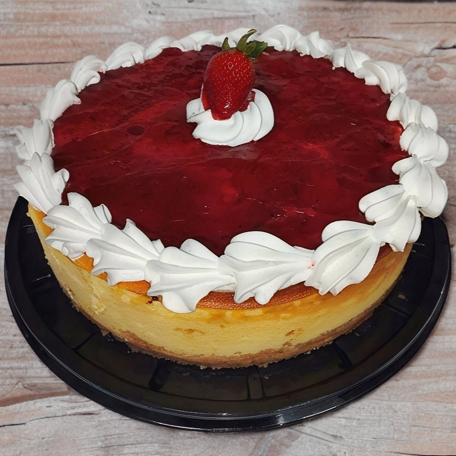 Elaborado con queso PhiladelPhia en una base de galleta y decorado con mermelada de fresa