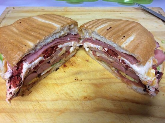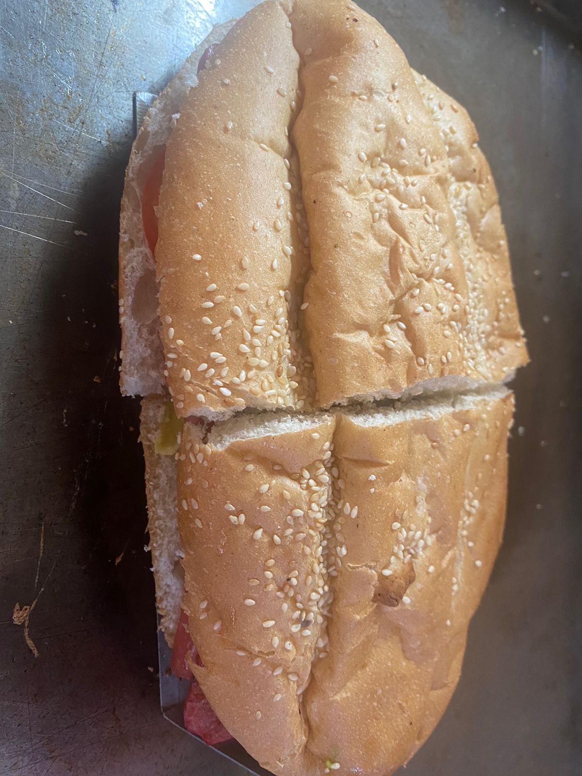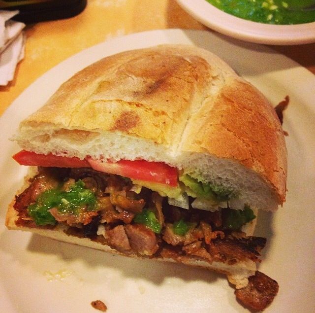 Tortas gigante de chistorra, salchicha, quesillo.Lleva mayonesa, frijoles, jitomate, cebolla, aguacate