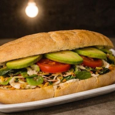 Pan bolillo, chorizo, quesillo, tomate, cebolla caramelizada, cilantro, aguacate, chile poblano, salsas, limón