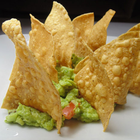 Aguacate, pico de gallo, totopos