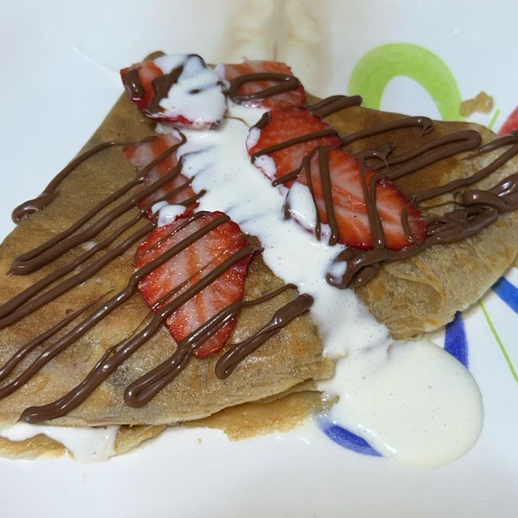 Rica crepa rellena de fresas con crema y nutella