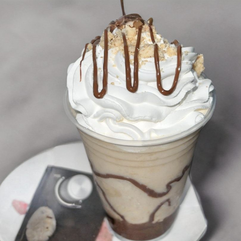 Preparado a base de hielo, leche y chocolate abuelita endulzado con un poco de azúcar
