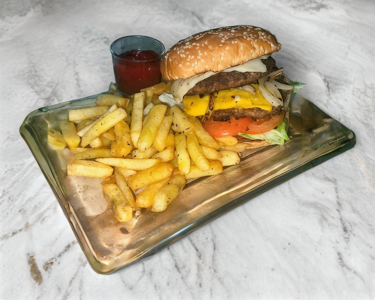 Hamburguesa Doble Doble*1 + 7up Lata 355 ml*1 + papas onduladas*1