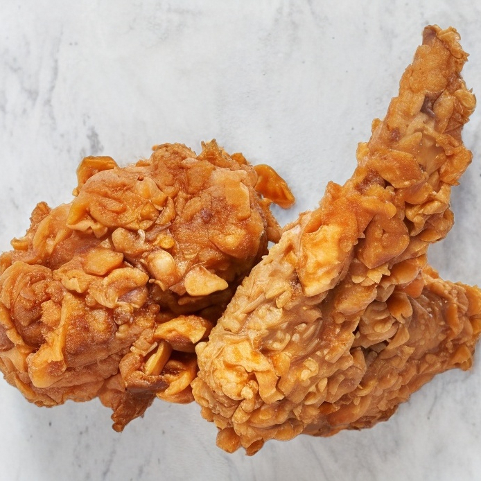 Pierna grande de pollo frito crujiente
