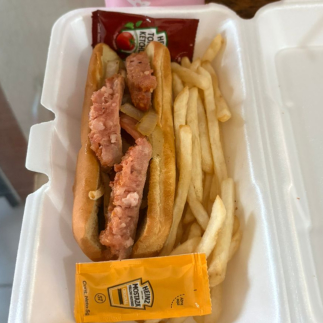 Carne de res, chorizo argentino, chistorra, queso gouda, jamón, vegetales 👉🏼cebolla, tomate y lechuga. Aderezo de la casa.