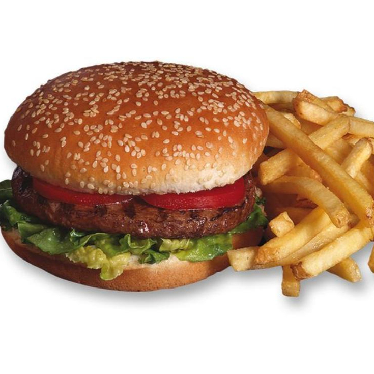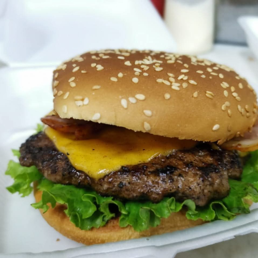 Hamburguesas Clásica : Carne de res, queso gouda, jamón, vegetales cebolla, tomate y lechuga. Aderezo de la casa.