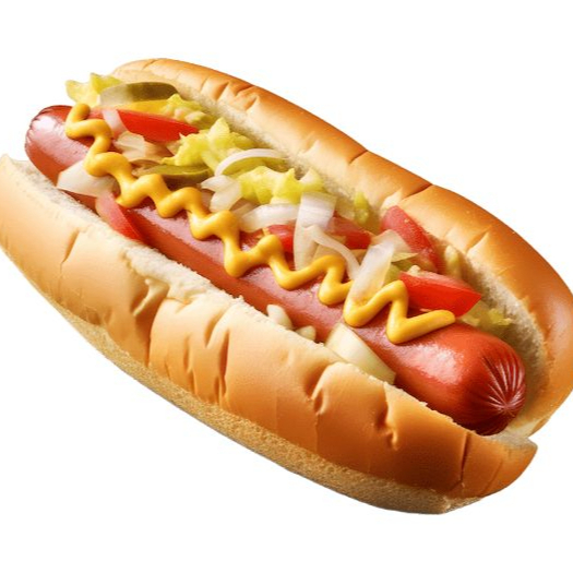 Salchichas Frankfurt, tocino y aderezos de la casa.