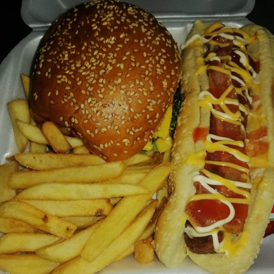 Hamburguesa Clásica con Papas*1 + HotDog sin papas*1