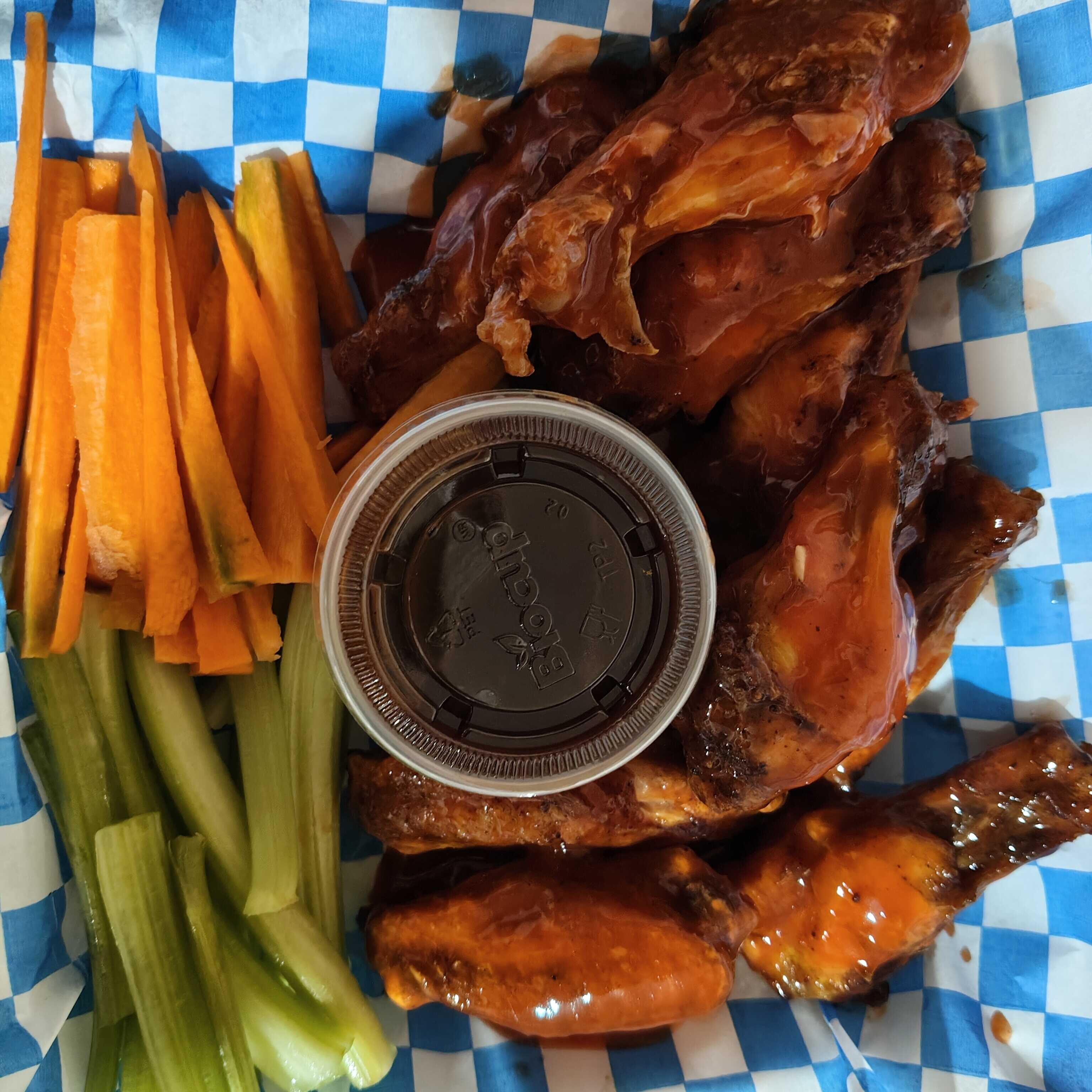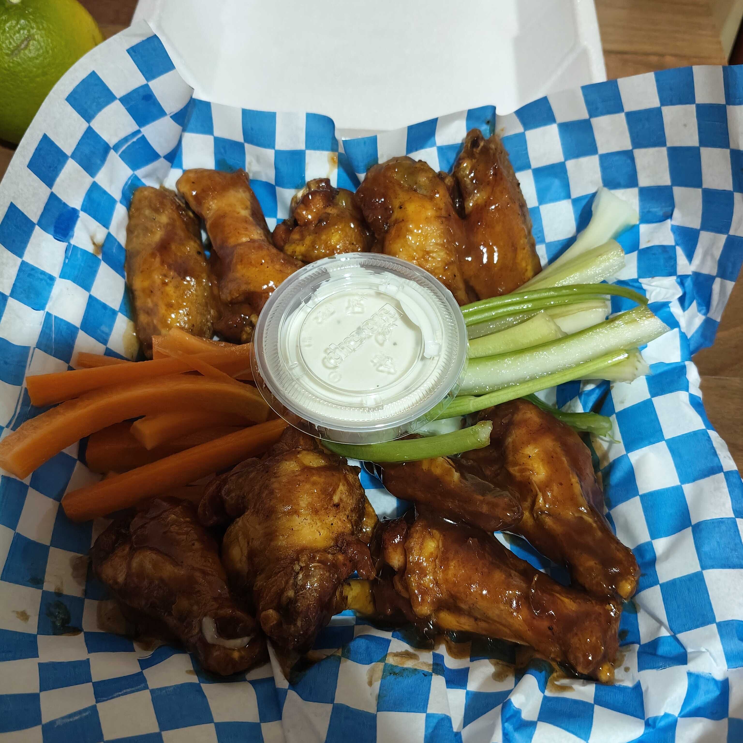 Incluye cualquier salsa a elegir. Cualquier orden de alitas y bonneles incluye vegetales y ranch.
