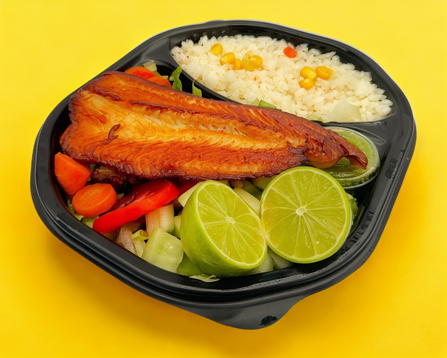 Un delicioso filete de tilapia (100g) grillado a la perfección. Sirve junto con tu elección de arroz o spaghetti (150g) y verduras salteadas (zanahoria, chayote, papa). Adornado con jitomate, pepino y lechuga para una frescura incomparable.