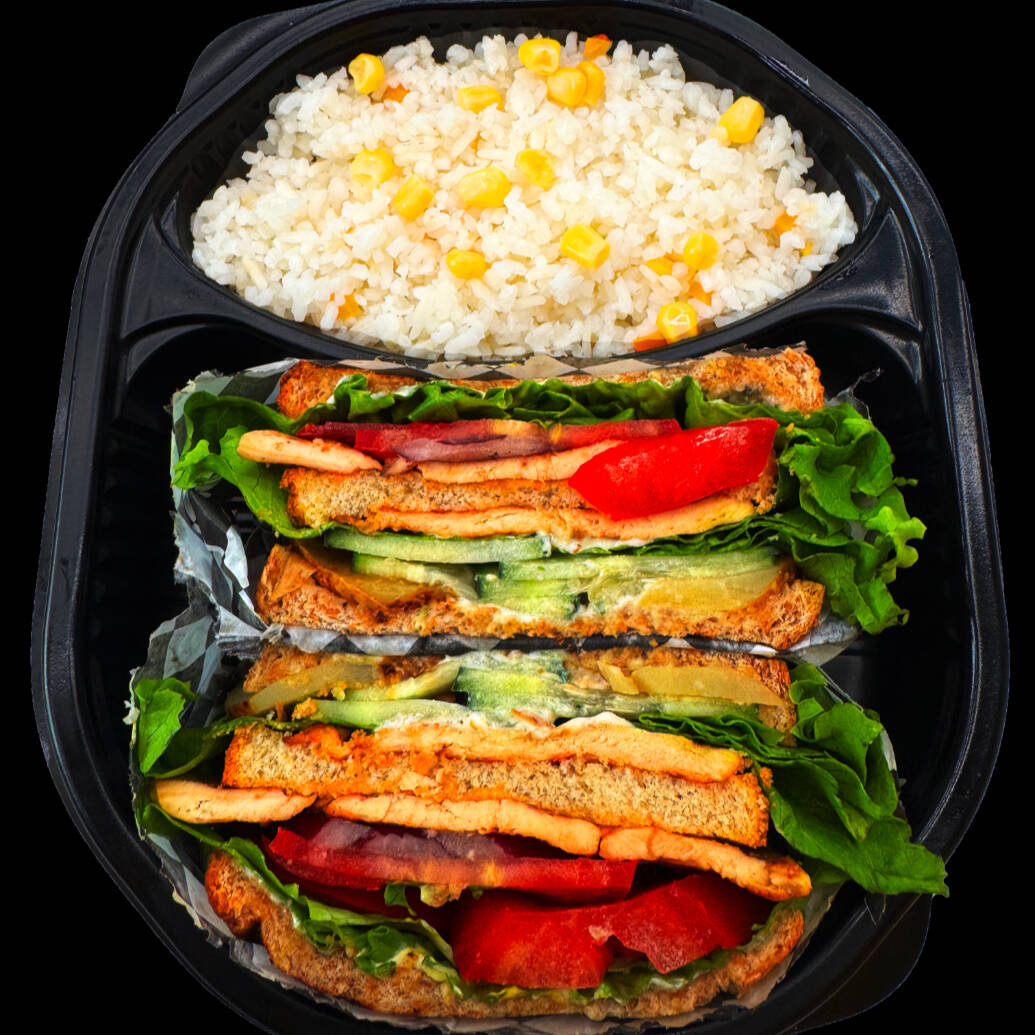 Pan integral suave, relleno con lechuga crujiente, jitomate, cebolla morada, pepino y aderezado con mayonesa y mostaza. Acompañado de pollo o res, según tu elección. ¿No te gusta algún ingrediente? ¡Puedes quitarlo sin problema! Personaliza tu sándwich y acompáñalo con arroz o espagueti (extras opcionales como huevo o salchicha disponibles).