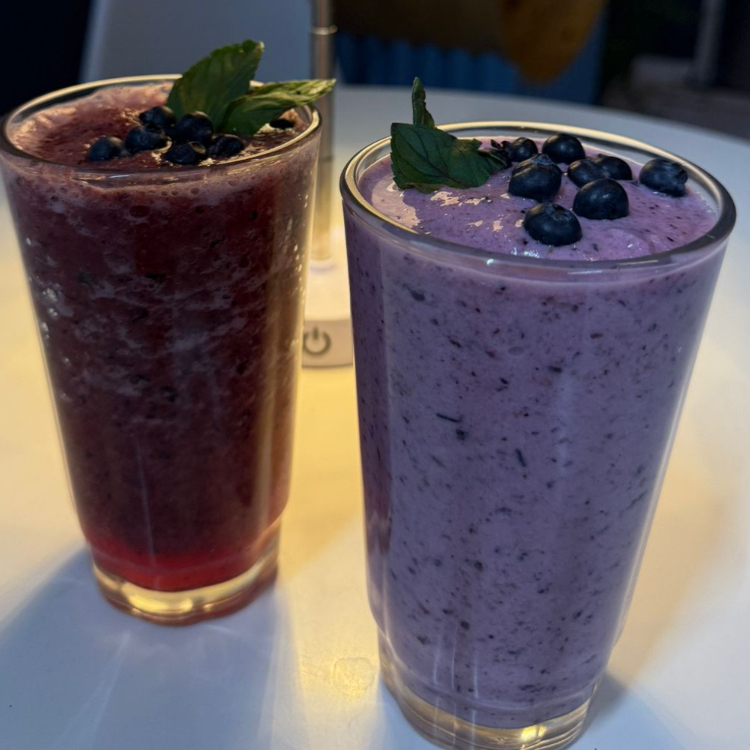 Bebida con leche fresas y berries de temporada con poco endulzante.