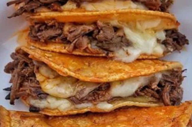 Muuuuuuerde esta rica quesabirria, con todo el sabor del queso, combinada con la birria jugosa.