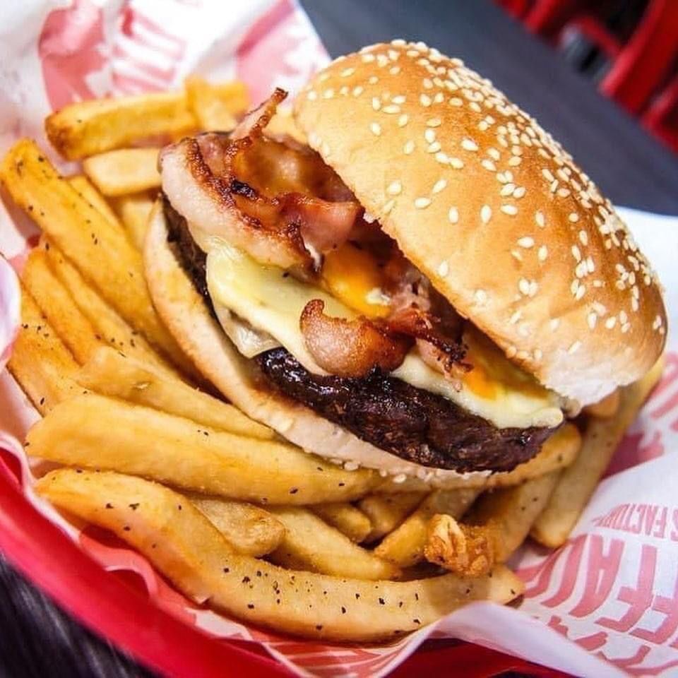 Carne de res (180 g), queso y cebolla caramelizada con nuestra salsa BBQ, acompañada de papas a la francesa.